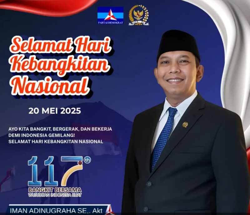 LINTAS SUKABUMI – IMAN ADINUGRAHA,SE, AKt Anggota DPR RI Fraksi Demokrat, Mengucapkan Selamat Hari Kebangkitan Nasional Ke 117, 20 Mei 2025.