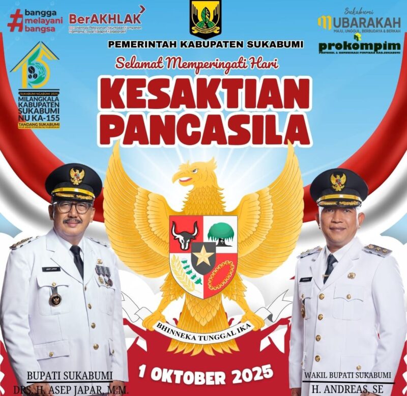 LINTAS SUKABUMI – Pemerintah Kabupaten Sukabumi Mengucapkan Selamat Memperingati Hari Kesaktian Pancasila, 1 Oktober 2025