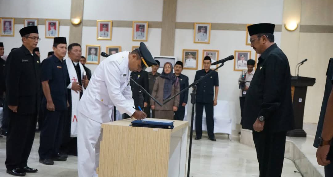 Prosesi pelantikan berlangsung khidmat dan dihadiri wakil Bupati H Andreas dan Sekretaris Daerah H Ade Suryaman.