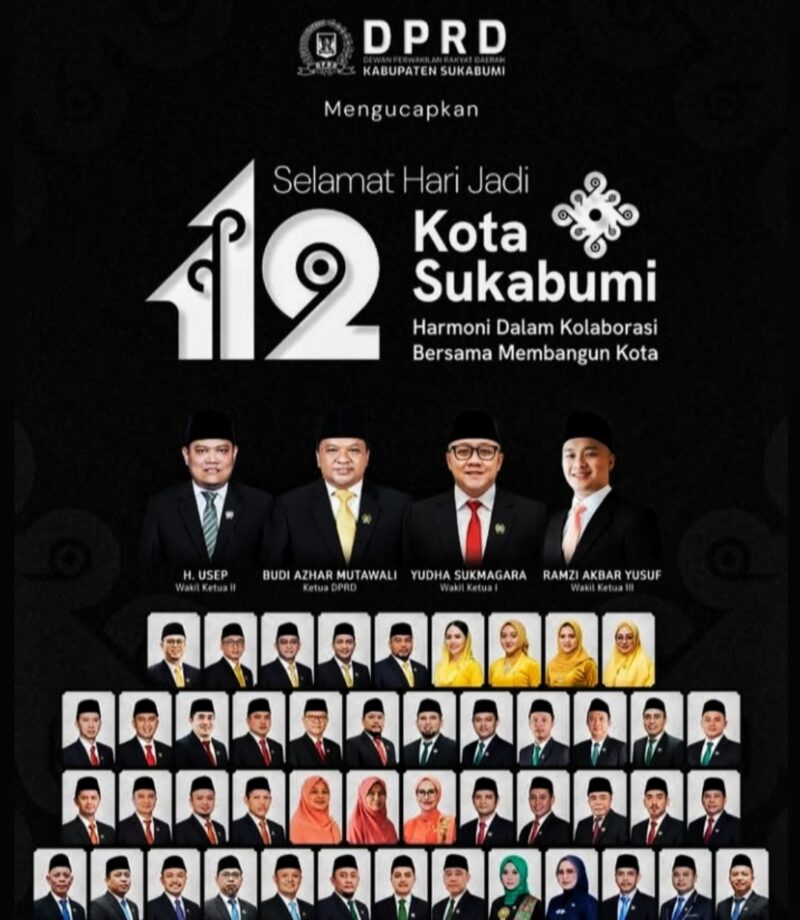 LINTAS SUKABUMI – Dewan Perwakilan Rakyat Daerah (DPRD) Kabupaten Sukabumi menyampaikan ucapan selamat atas peringatan Hari Ulang Tahun (HUT) ke-112 Kota Sukabumi. Ucapan tersebut menjadi bentuk dukungan terhadap perjalanan pembangunan yang telah dilakukan Pemerintah Kota Sukabumi selama lebih dari satu abad.