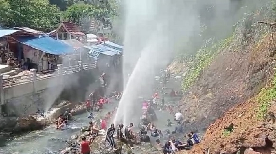 Destinasi wisatanya….Geyser air panas dan Curug ci Erang